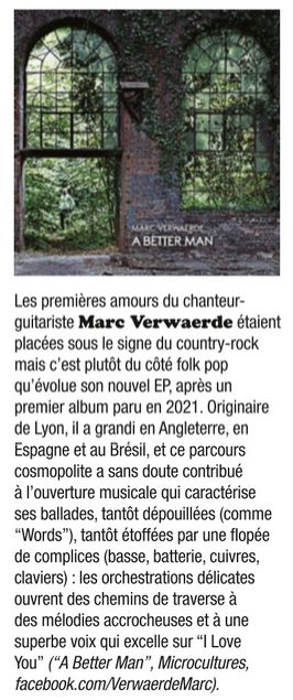 Le mec parle de lui à la 3ème personne, c’est la terrible sentence de celui qui décide de nommer son projet par son prénom suivi de son nom. Mais il s’avère que oui, mon EP “a Better Man”, oeuvre signée en solo et pourtant réalisée en collectif, est chroniquée (élogieusement) dans Rock’n’Folk, la revue qui a bercé ma vie, et surtout la relation que j’ai entretenue avec mon père. Ce fut le canal de communication privilégié de nos conversations de passionnés de “rock-country-folk-mettez-les-dans-des-cases-je-m’en-cogne”.